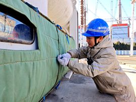 全員加班為變電站設(shè)備做防凍保溫,為網(wǎng)控變電站的關(guān)鍵開(kāi)關(guān)設(shè)備“穿”上定制保溫棉衣;另一路由經(jīng)驗(yàn)豐富的老員工牽頭,對(duì)空壓機(jī)管路及附屬設(shè)施加裝保溫層,”班長(zhǎng)趙詩(shī)宇一邊指導(dǎo)年輕員工郝巖包裹開(kāi)關(guān)接線(xiàn)口。